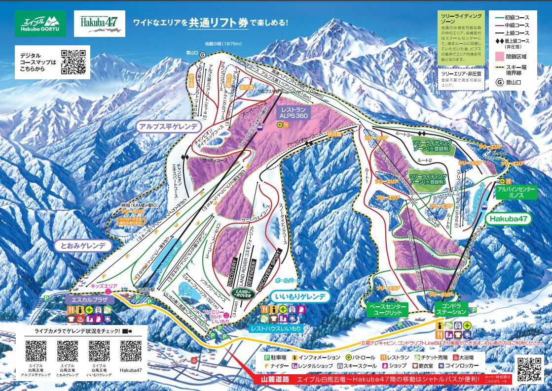 하쿠바 지역에는 11곳의 리조트 전역에 리프트 146개와 200개가 넘는 코스가 있어 다양한 지형과 질 좋은 파우더 스노를 경험하실 수 있습니다.