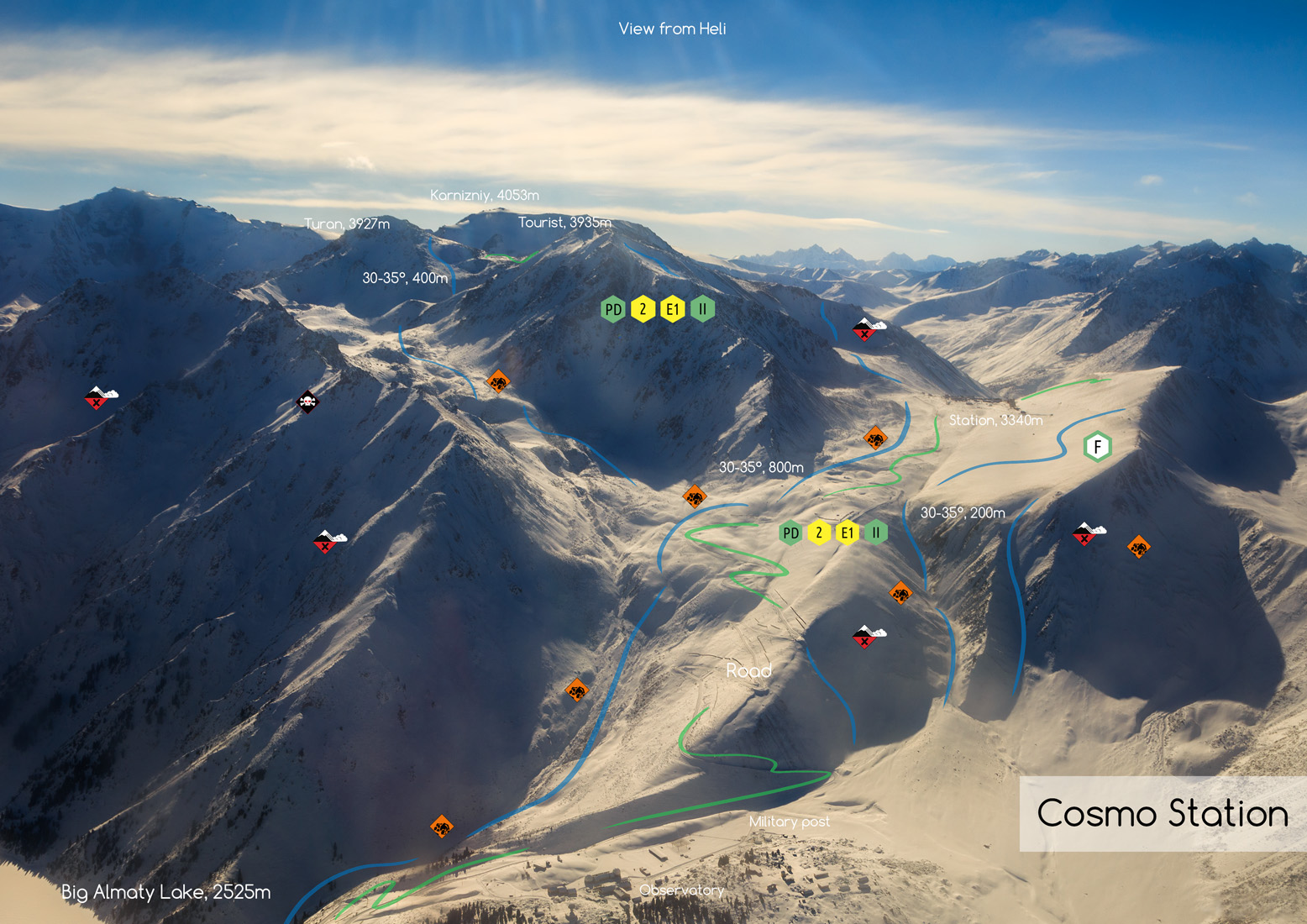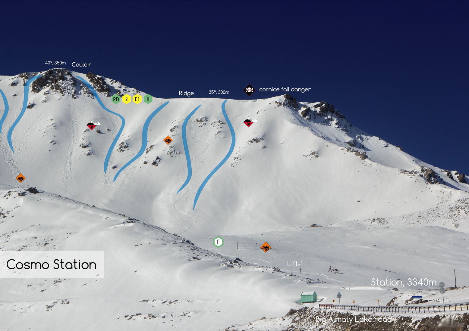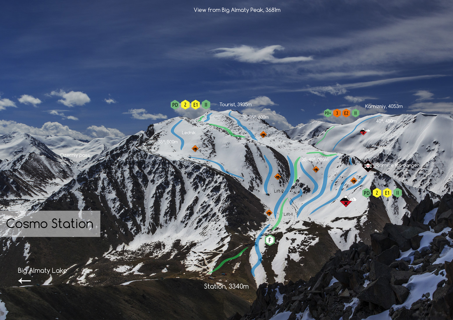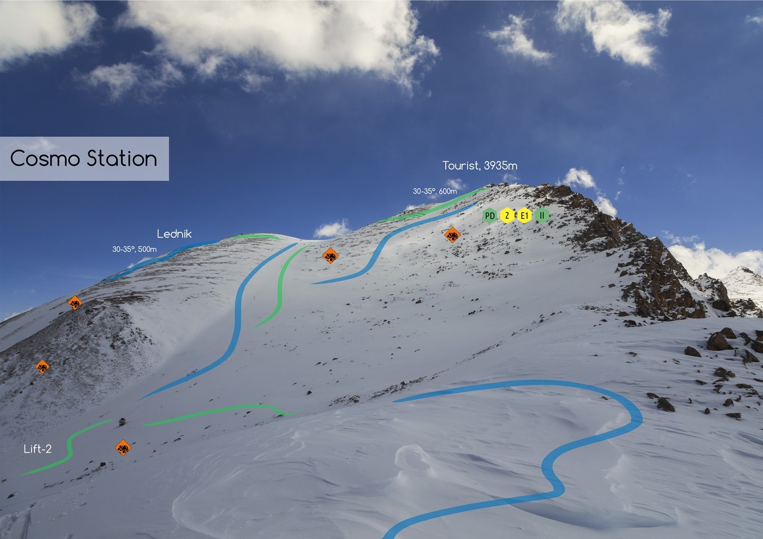 동서로 둘러싼 Maloalmatinsky 산군이 복합지형을 형성, 라인 선택의 즐거움을 더합니다