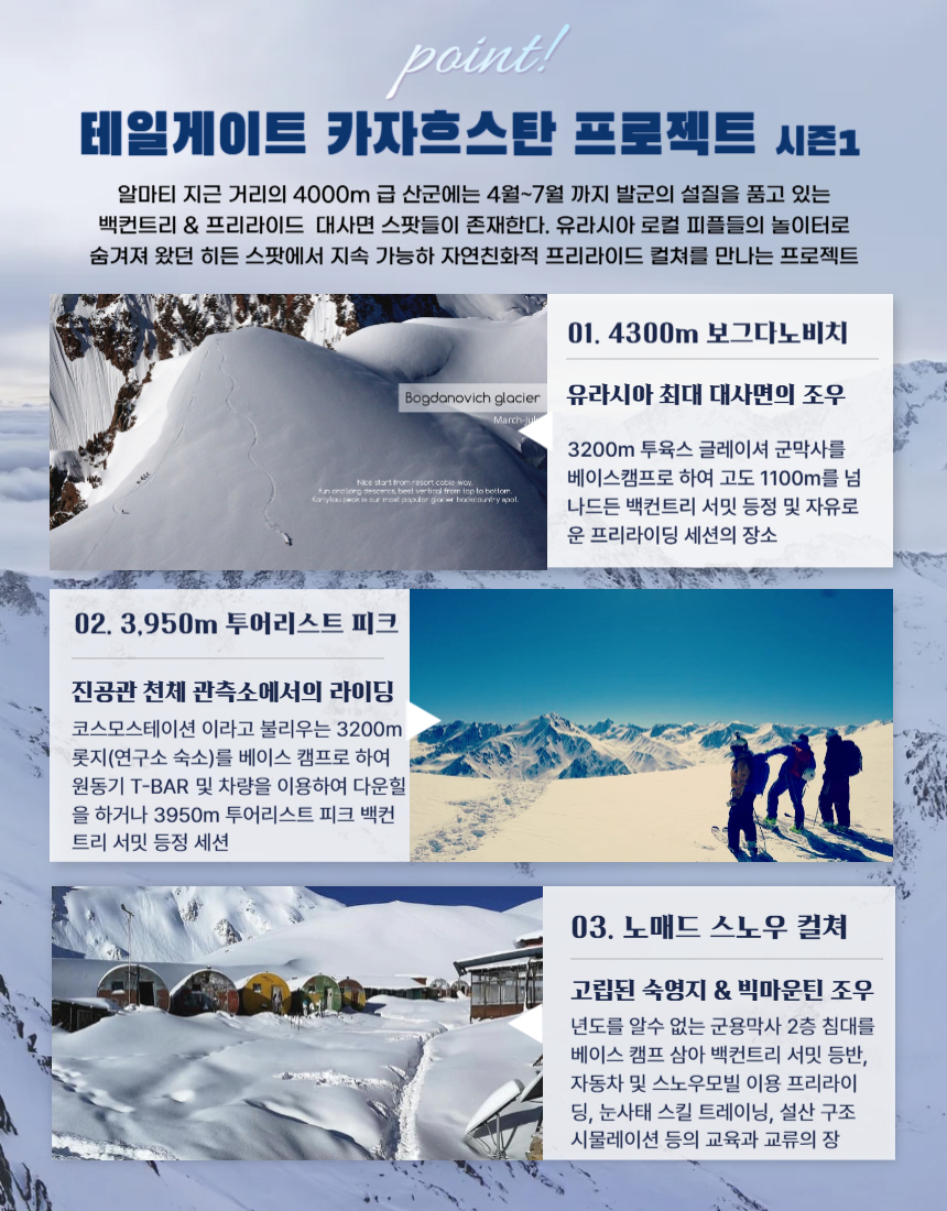 🎿 테일게이트 카자흐스탄 백컨트리 스키·보드 어드벤처 안내문