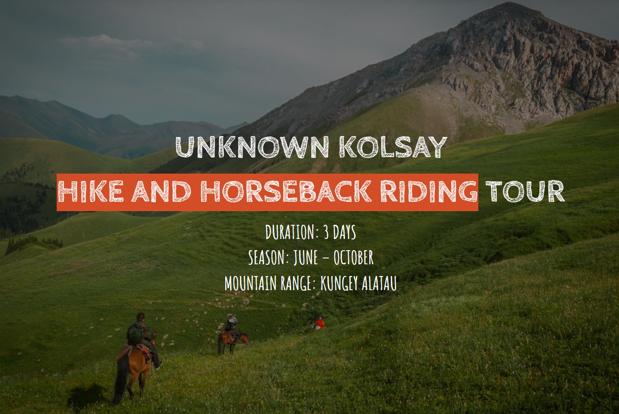 쿤게이 알라타우 산맥의 사람의 손길이 닿지않는 비밀스런 길을 승마 트래킹과 하이킹으로 만나는 리얼 와일드 트립! 야생의 자연 그대로의 아름다움속을 여행하고, 고급 호텔 대신 통나무 오두막 에서 노매드를 느끼며, 3일동안 스마트폰 없는 자연속 본연의 자신을 만나는 여행을 상상해 보셨나요? 초보자와 숙련 된 승마실력 및 하이킹을 즐기는 분들이라면 모두에게 추천합니다.