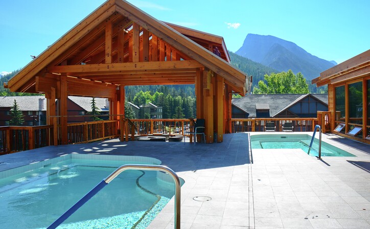 MOOSE HOTEL & SUITES의 가장 특별한 매력은 바로 옥상 루프탑 테라스에 위치한 **핫 풀 (Hot Pools)**입니다. 따뜻한 물에 몸을 담근 채, 눈앞에 펼쳐지는 웅장한 밴프 록키 산맥의 절경을 감상할 수 있습니다. 특히 일출이나 일몰 시간에 즐기는 스파는 잊을 수 없는 경험을 선사합니다.